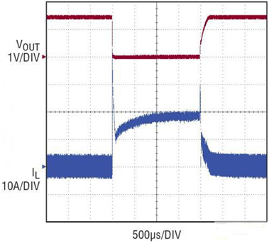 LTC3866 的另一個獨特之處是短路軟恢復。內部軟恢復電路保證,當電源從短路情況恢復時沒有過沖 (如圖 6 所示)。